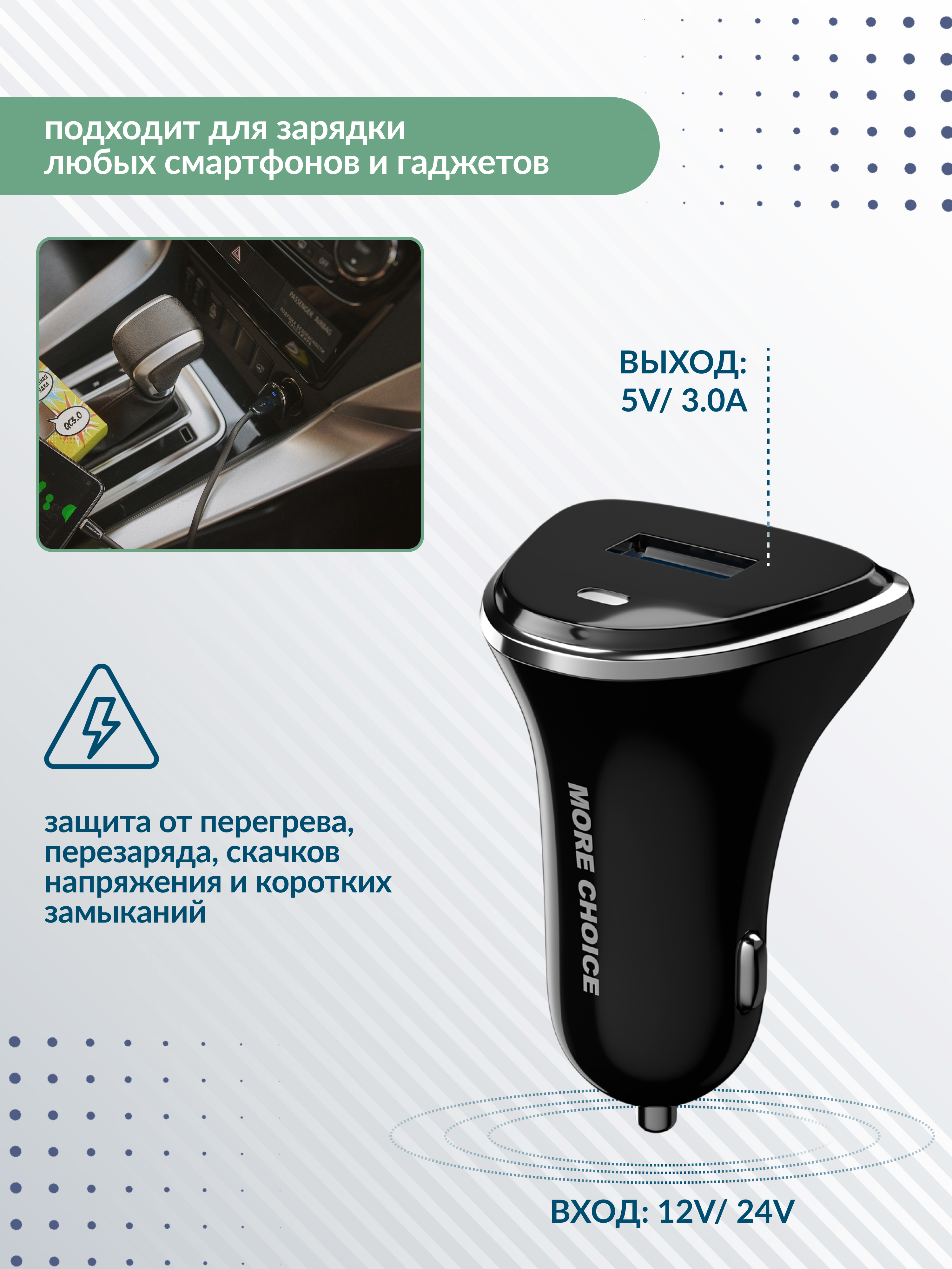 Автомобильное зарядное устройство More Choice — это высококачественный зарядник, который станет незаменимым помощником в вашем автомобиле. С его помощью вы сможете быстро и эффективно подзаряжать свои устройства, благодаря поддержке быстрой зарядки QC 3.0. Это означает, что ваша зарядка для телефона будет происходить в несколько раз быстрее, чем с обычными зарядными устройствами.