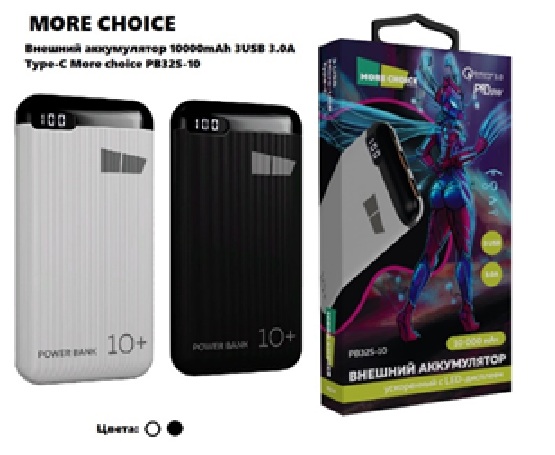 Внешний аккумулятор More Choice PB32S-10 с емкостью 10000 мАч — это надежное решение для зарядки вашего смартфона, планшета и других устройств. Благодаря функции быстрой зарядки, этот повербанк обеспечивает эффективное восстановление энергии в любое время, что идеально подходит для активных пользователей.