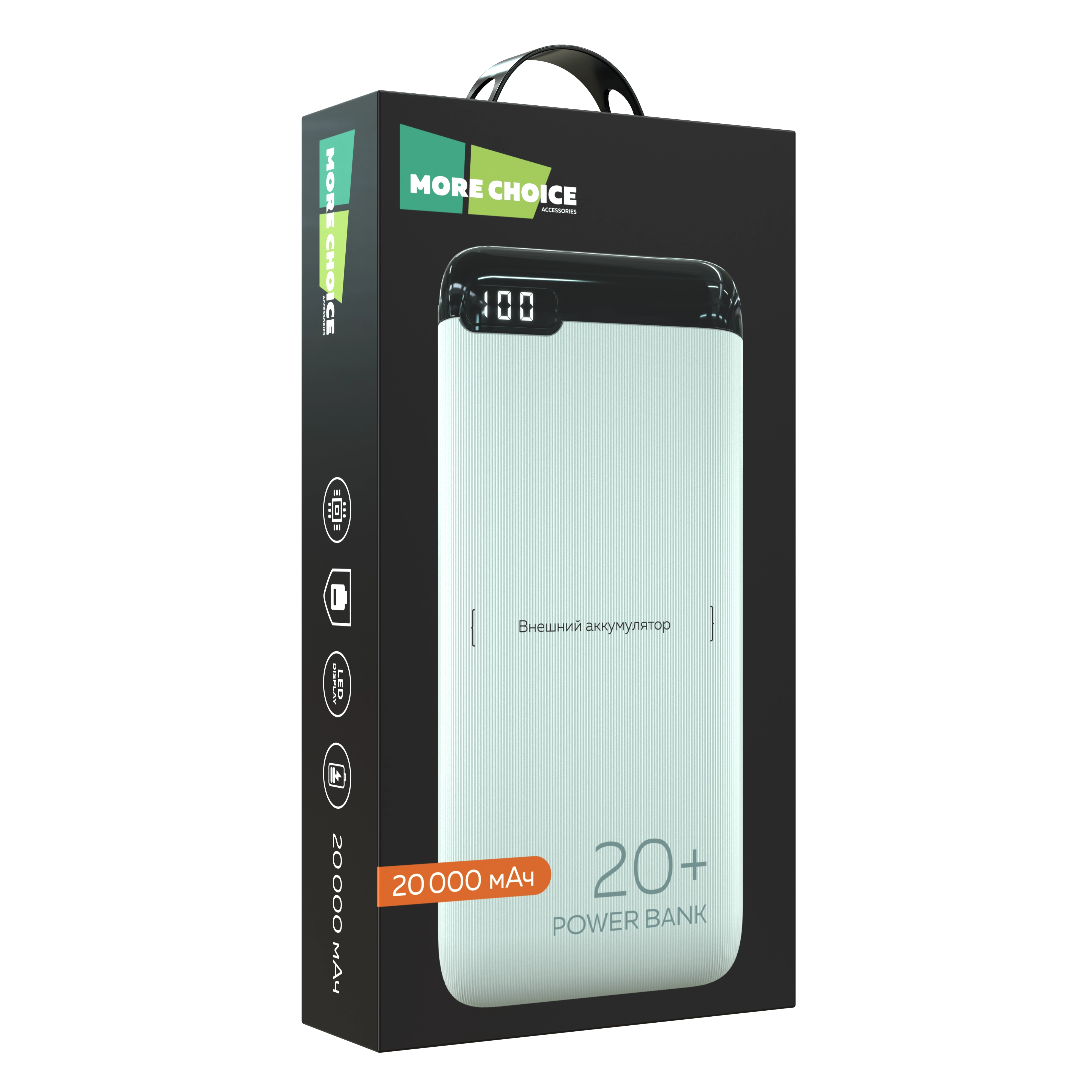 Внешний аккумулятор More Choice — надежное решение для зарядки гаджетов в любых условиях. Он идеально подходит для поездок, активного отдыха и повседневного использования, обеспечивая многократную зарядку смартфонов, планшетов и других устройств.
