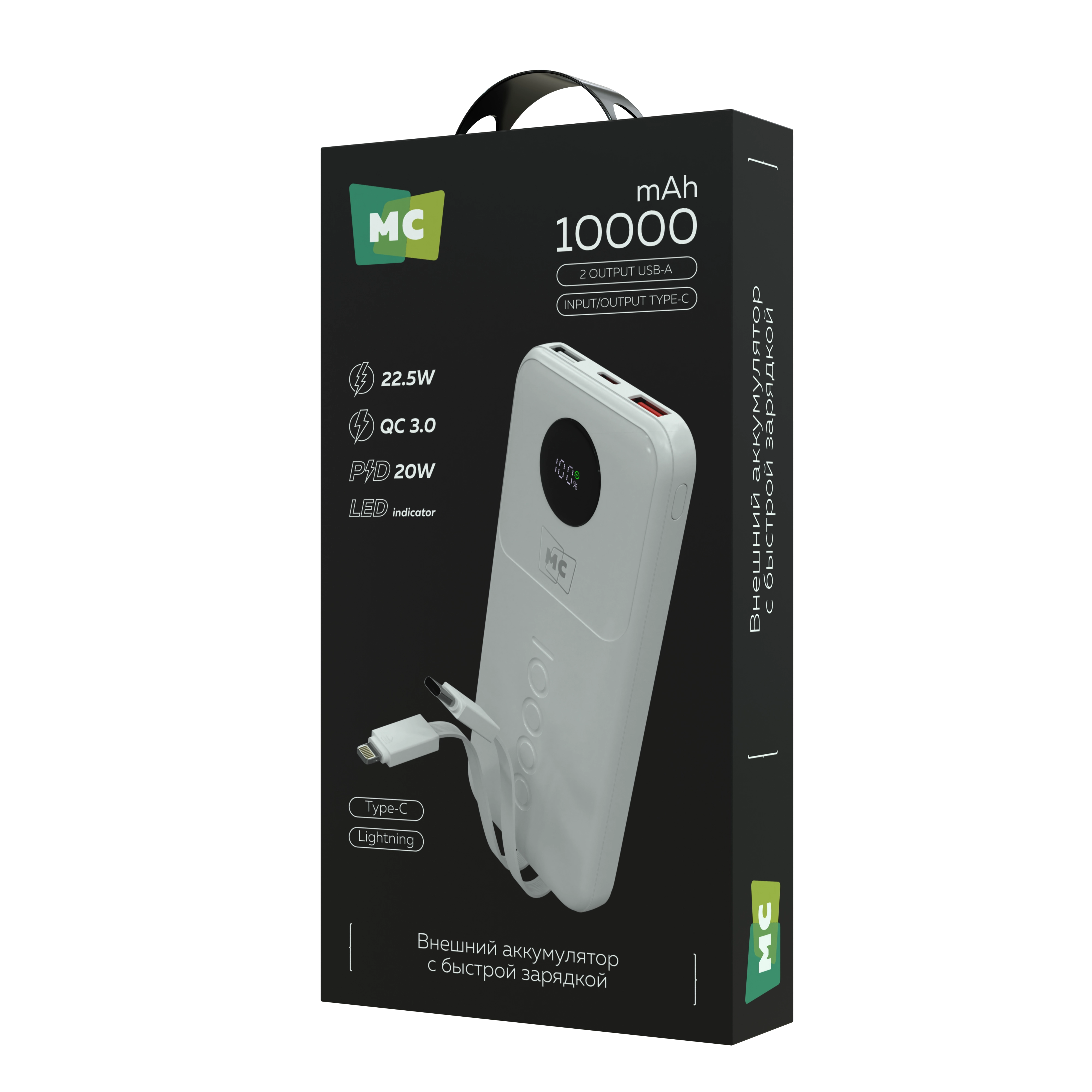 Встроенные кабели Lightning и USB Type-C избавляют от необходимости искать дополнительные провода, так как все необходимое всегда под рукой.