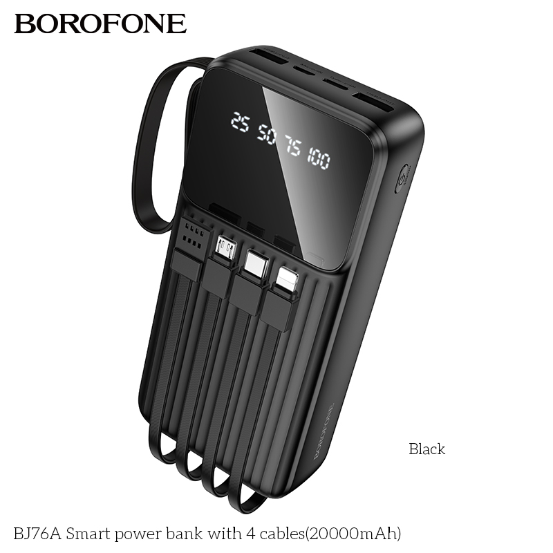 Внешний аккумулятор 20000mAh 2USB+1Type-C+1Micro USB 2.0A Borofone BJ76A с кабелями