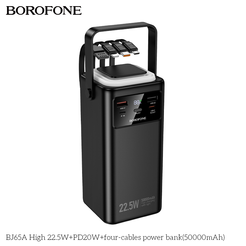 Внешний аккумулятор 50000mAh 2USB+1Type-C+1Lightning 2.0A 22.5W PD 20W Borofone BJ65A с кабелем