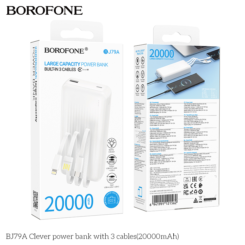 Внешний аккумулятор 20000mAh 1USB+1Type-C 2.0A Borofone BJ79A с кабелями