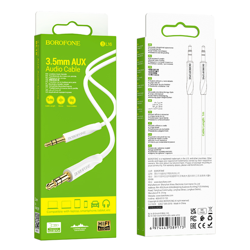 Аудиокабель Borofone BL16 - замечательный аксессуар, предназначенный для подключения гаджетов друг к другу через интерфейс mini-jack. Акустический кабель имеет стандартный разъем 3,5 мм, который подойдет практически к любому устройству и позволит подключить наушники, портативную акустику, аудио-систему автомобиля. Аудиокабель выполнен из высококачественных материалов, гарантирующих долговечность и надёжность. Длина кабеля 1 м.