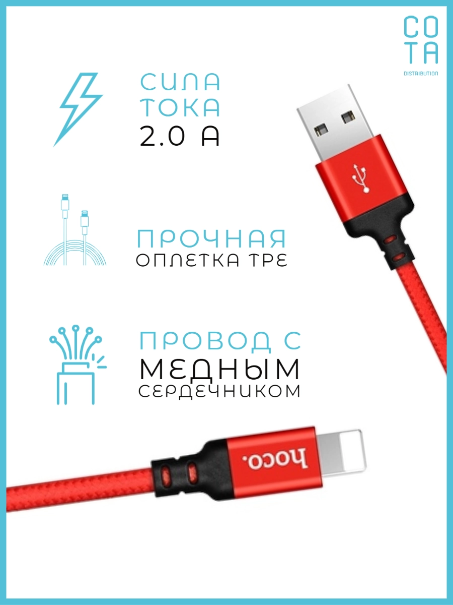 Кабель USB Hoco X14 отличается долговечностью. Прорезиненный корпус коннектеров lightning и USB 2.0 сохраняет провод от скручиваний и надломов, что позволит долго и исправно пользоваться проводом.