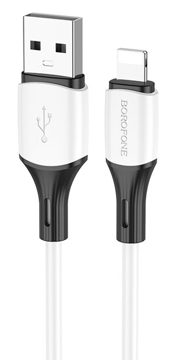 Дата-кабель длиной 1 м поддерживает нагрузку до 2.4 А, а также одновременную зарядку и передачу данных. Силиконовое покрытие обеспечивает прочность, кабель трудно повредить при многократном сгибании. Представлен в черном и белом цветах. Вес 21 г.