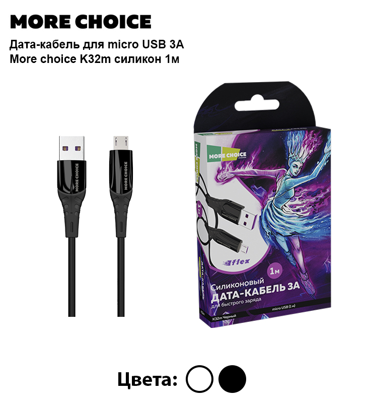 Кабель для быстрой зарядки More Choice с разъемом micro USB идеально подходит для пользователей, которым важно быстро и эффективно заряжать свои устройства. Этот провод питания обеспечивает стабильное подключение и высокую скорость зарядки, что делает его идеальным решением для повседневного использования.