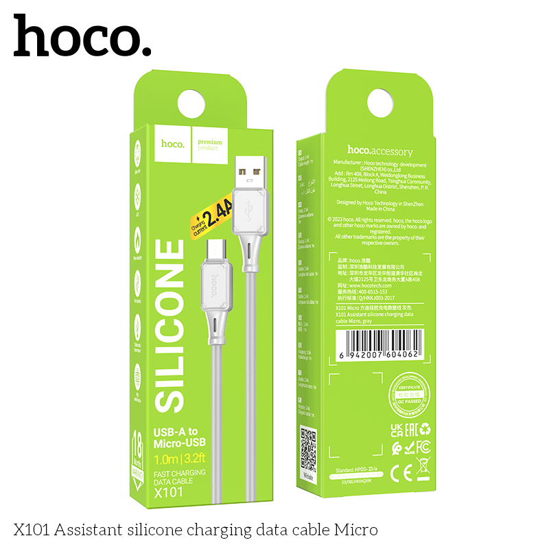 Дата-кабель USB 2.4A для micro USB Hoco X101 силикон 1м (30 шт)