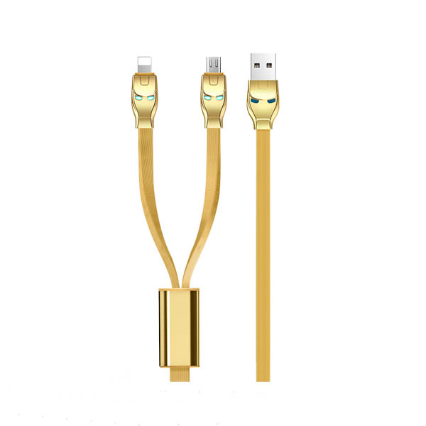 Дата-кабель в стиле Железного человека для настоящих фанатов. Оригинальный дизайн совмещает в себе два вида разъема Lighting, Micro USB. Оригинальности добавляют голубые индикаторы в глазах Железного человека. Сам кабель с плоским сечением, а это значит, что он прослужит очень долго. Прекрасное сочетание интересного дизайна и функциональных качеств.