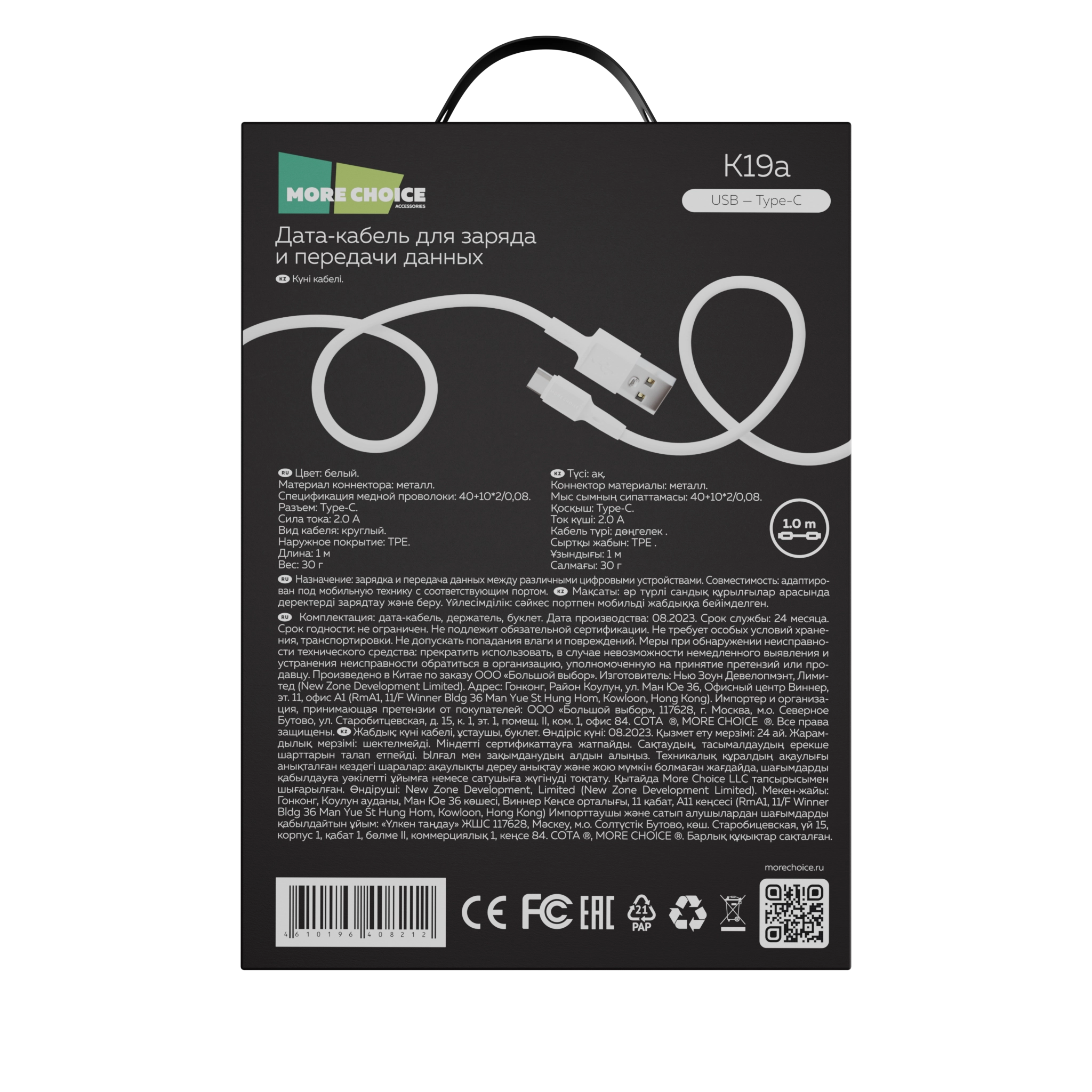 Кабель More Choice подходит для безопасной и стабильной зарядки. Разъем подключения Type-C, сила тока 2А и длина 1 м делают его универсальным и совместимым со множеством устройств