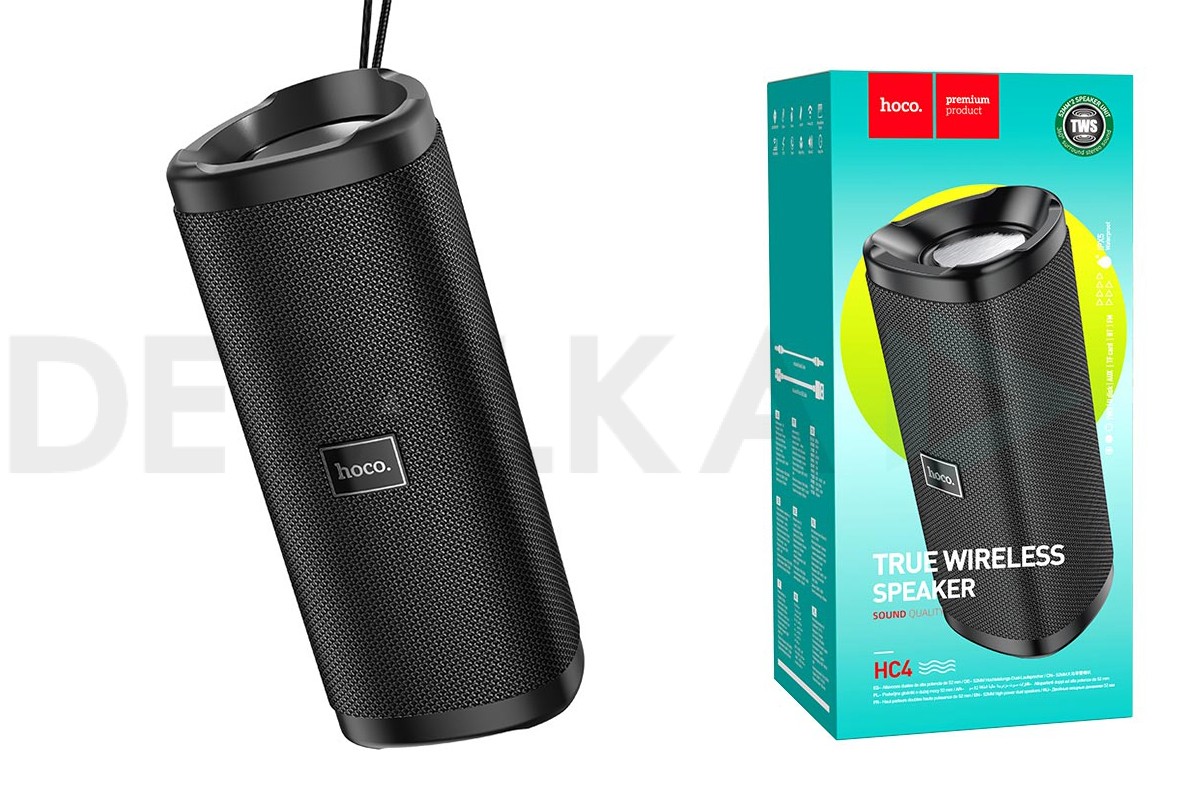 Беспроводная Bluetooth-колонка Hoco HC4 поразит любого своим чистым и громким звуком. Представленная акустика может воспроизводит музыку через Bluetooth, AUX кабель и даже microSD карты. Колонка имеет форму цилиндра, и внешне напоминает небольшую бочку. По бокам находится тканевая сетка, она закрывает динамики. Наверху расположен аккуратный и удобный пульт управления, сбоку веревочка для транспортировки аксессуара и небольшой индикатор работы.