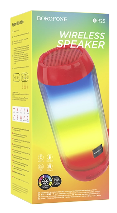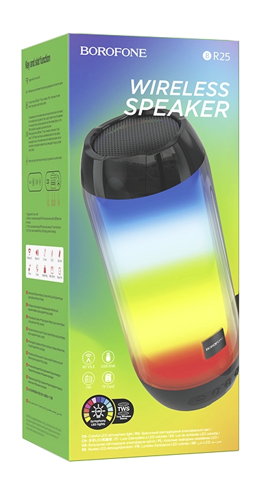 Bluetooth-колонка Borofone BR25 поддерживает стандарт Bluetooth v5.3, может проигрывать музыку с карт памяти microSD, есть режим FM-приемника. Имеет 1 динамик диаметром 52 мм и мощностью 5 Вт. Аккумулятор емкостью 1200 мАч заряжается в течение 1.5 часов и обеспечивает работу колонки на 2 часа.