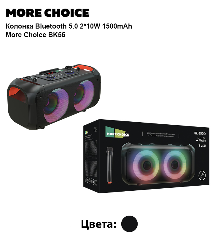 Беспроводная колонка More Choice — это идеальный компаньон для создания музыкальной атмосферы. Она сочетает в себе стильный дизайн и передовые технологии, что делает её незаменимым аксессуаром для любителей музыки.