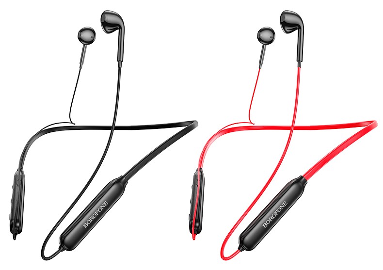 Спортивные Bluetooth-наушники со шнурком, работающие до 12 часов без подзарядки (в режиме ожидания до 200 часов). Длина шнура 95 см. Выполнены в черном и красном цветах.