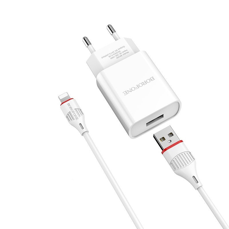 Сетевое зарядное устройство Borofone BA20A обладает стабильным показателем мощности, что обеспечивает быструю зарядку устройства и сводит к минимуму возможные повреждения. Значение силы тока на выходе usb 2,1 A. Детали корпуса выполнены из пластика высокого качества. Порт зарядки надежно зафиксирован в гнезде устройства, рассчитан на длительную производительность, совместим с любым кабелем и позволяет заряжать любое мобильное устройство. Комплектуется кабелем lightning длиной 1 м.