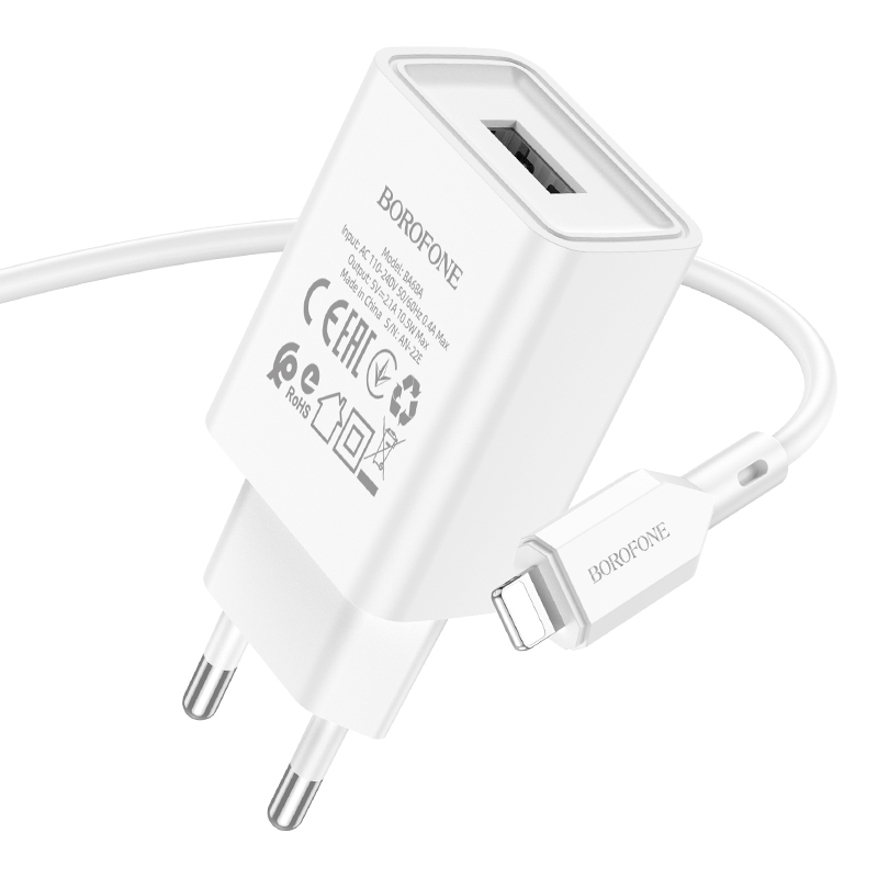 Сетевое зарядное устройство Borofone BA68A имеет один USB порт c максимальной силой тока 2.1 А. Оснащен материалом огнестойким, что не позволяет перегреваться. Длина 1м, вес 41гр.