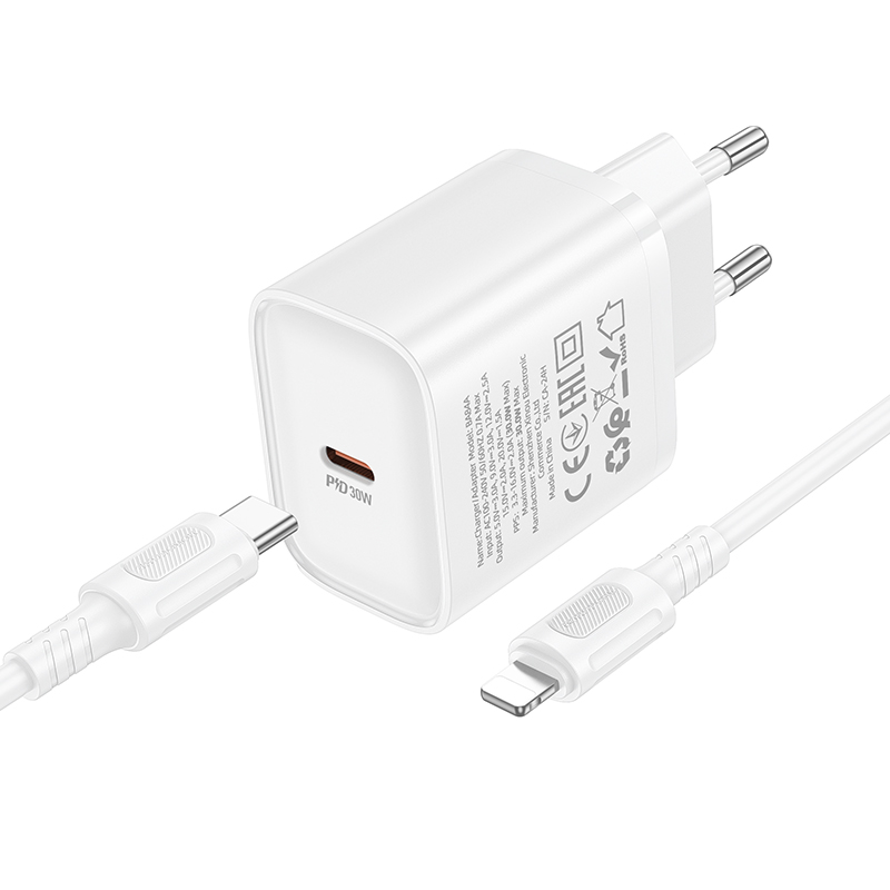 В комплект входит кабель длиной 1 м Type-C на Lightning 8-pin, что делает зарядное устройство идеальным для владельцев техники Apple.