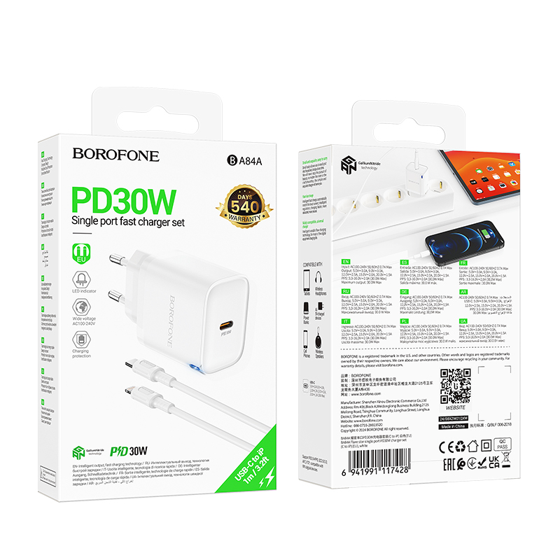 Сетевое зарядное устройство Borofone – это стильный и надежный аксессуар для зарядки современных устройств. Выполненное из прочного ABS-пластика, оно отличается долговечностью и устойчивостью к износу. Компактные размеры (78.8×42.3×30 мм) и легкий вес (73 г) делают его удобным для использования дома, в офисе или в поездках.