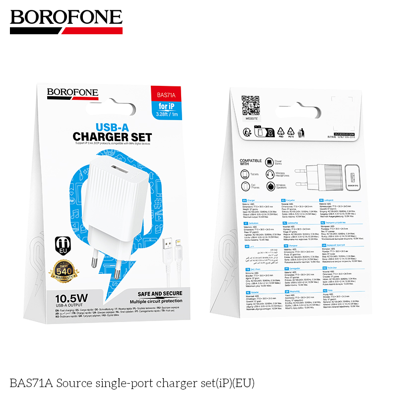 СЗУ 1USB 2.1A для Lightning 8-pin Borofone BAS71A