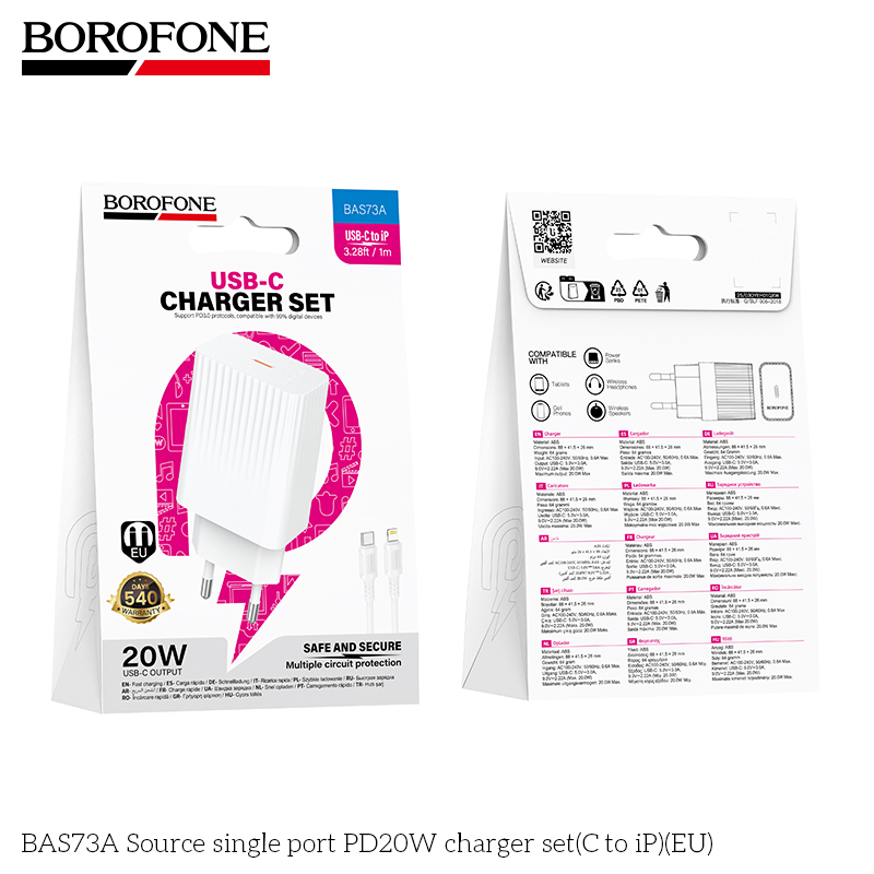 СЗУ 1Type-C 3.0A PD20W быстрая зарядка для Lightning 8-pin Type-C Borofone BAS73A