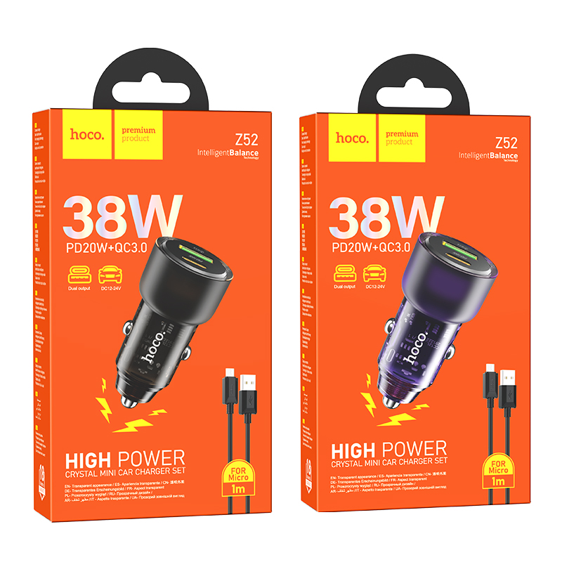 АЗУ Hoco Z52 – это современное автомобильное зарядное устройство, предназначенное для быстрой и эффективной зарядки мобильных устройств. Оно оснащено одним USB-портом и одним портом Type-C, поддерживающими технологии быстрой зарядки PD3.0 и QC3.0 с общей мощностью до 38 Вт. Это позволяет заряжать устройства с разъемами micro USB и Type-C максимально быстро и безопасно. АЗУ Hoco Z52 – это идеальное решение для тех, кто ценит скорость и надежность зарядки своих мобильных устройств в автомобиле.