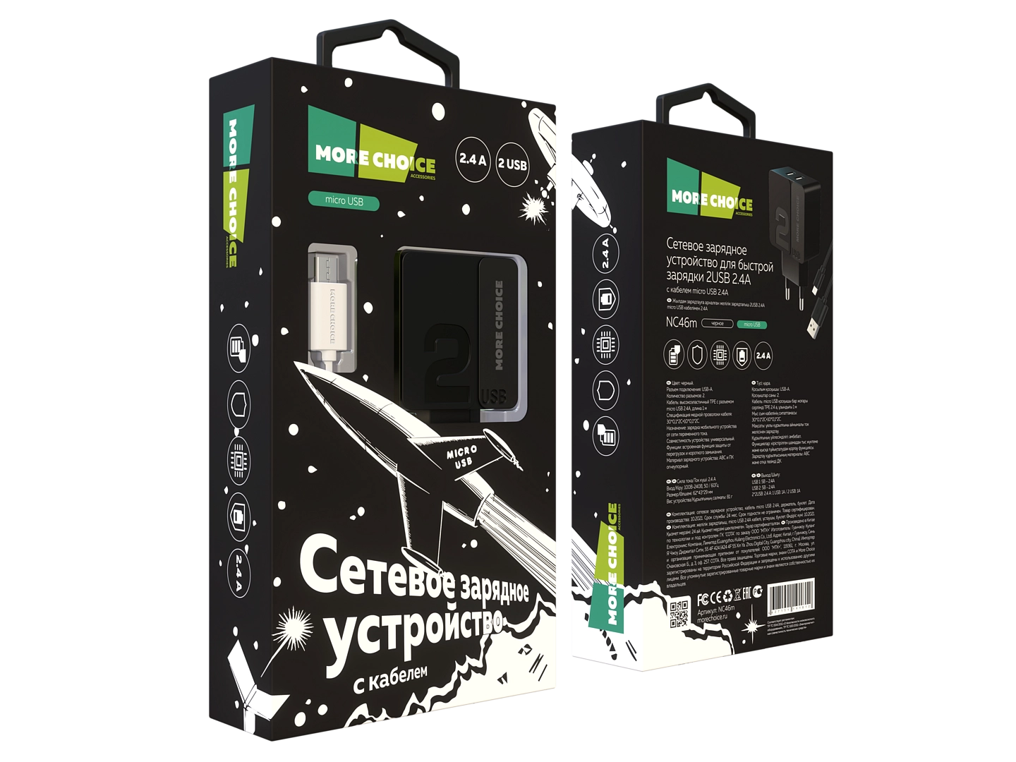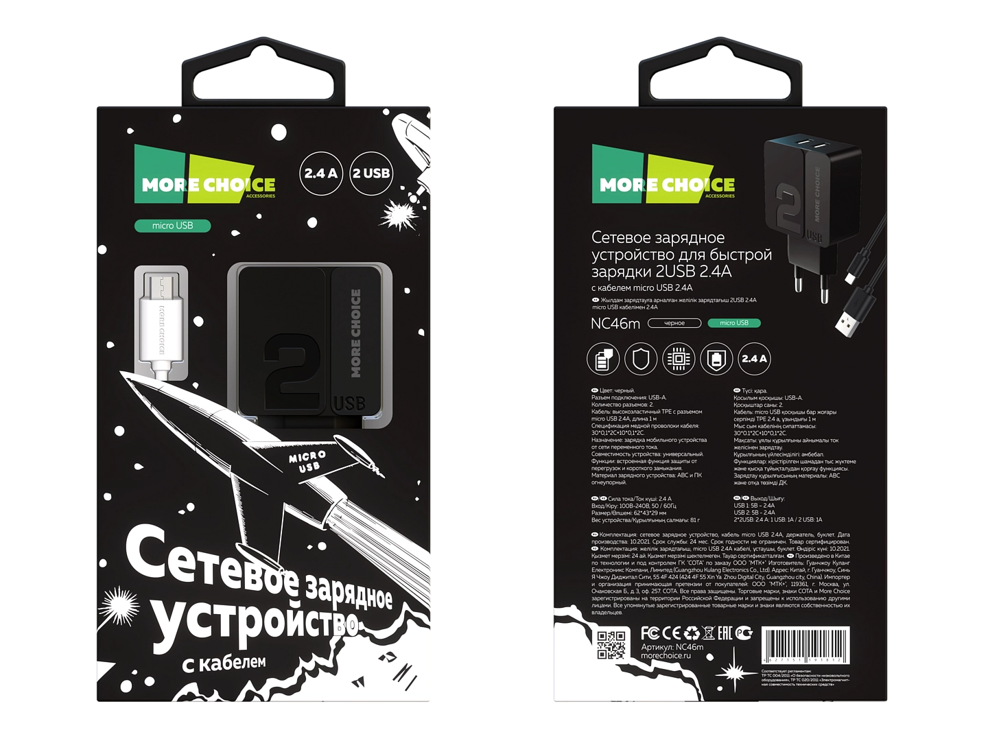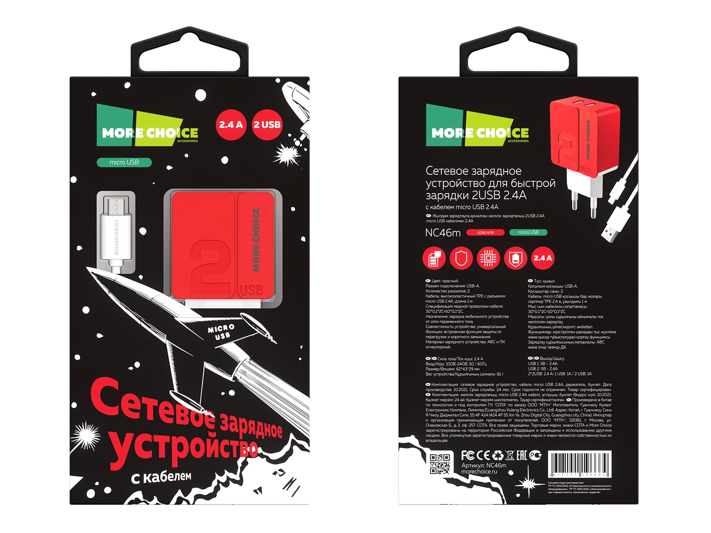 Универсальный адаптер More Choice NC46m — это идеальное решение для зарядки смартфонов и планшетов с разъемом microUSB. С двумя USB-разъемами вы можете одновременно заряжать два устройства, а кабель с microUSB обеспечивает быструю и эффективную зарядку.