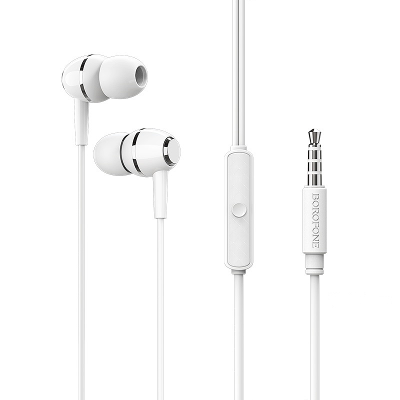 Borofone BM36 - отличные наушники в стильном дизайне. Благодаря наличию технологии подавления эха и шумов даже в шумной обстановке будет обеспечена замечательная слышимость. Качественные комплектующие позволяют добиться высокого качества звучания даже при длительном проигрывании музыки. Микрофон обладает высокой чувствительностью и может уловить даже шёпот. Мягкие эргономичные силиконовые амбушюры плотно приникают к поверхности уха. Получайте удовольствие от звучания без посторонних звуков. Кнопка управления удобно расположены на кабеле, вам не придется доставать ваш гаджет из сумочки или кармана.