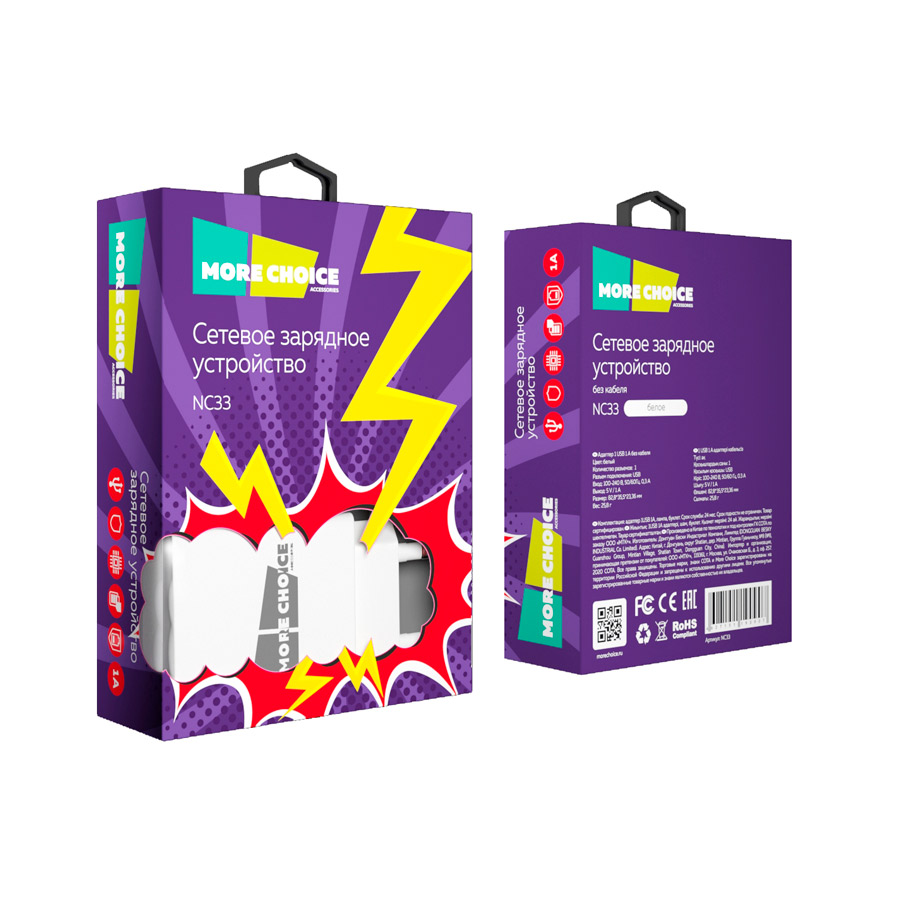 Для безопасной зарядки зарядное устройство More Choice оснащено чипом с защитой от перегрева, перегрузки и короткого замыкания, что гарантирует долгую и надежную работу как самого устройства, так и подключаемой электроники. Это сетевое зарядное устройство — практичный выбор для тех, кто ищет простое и функциональное решение.