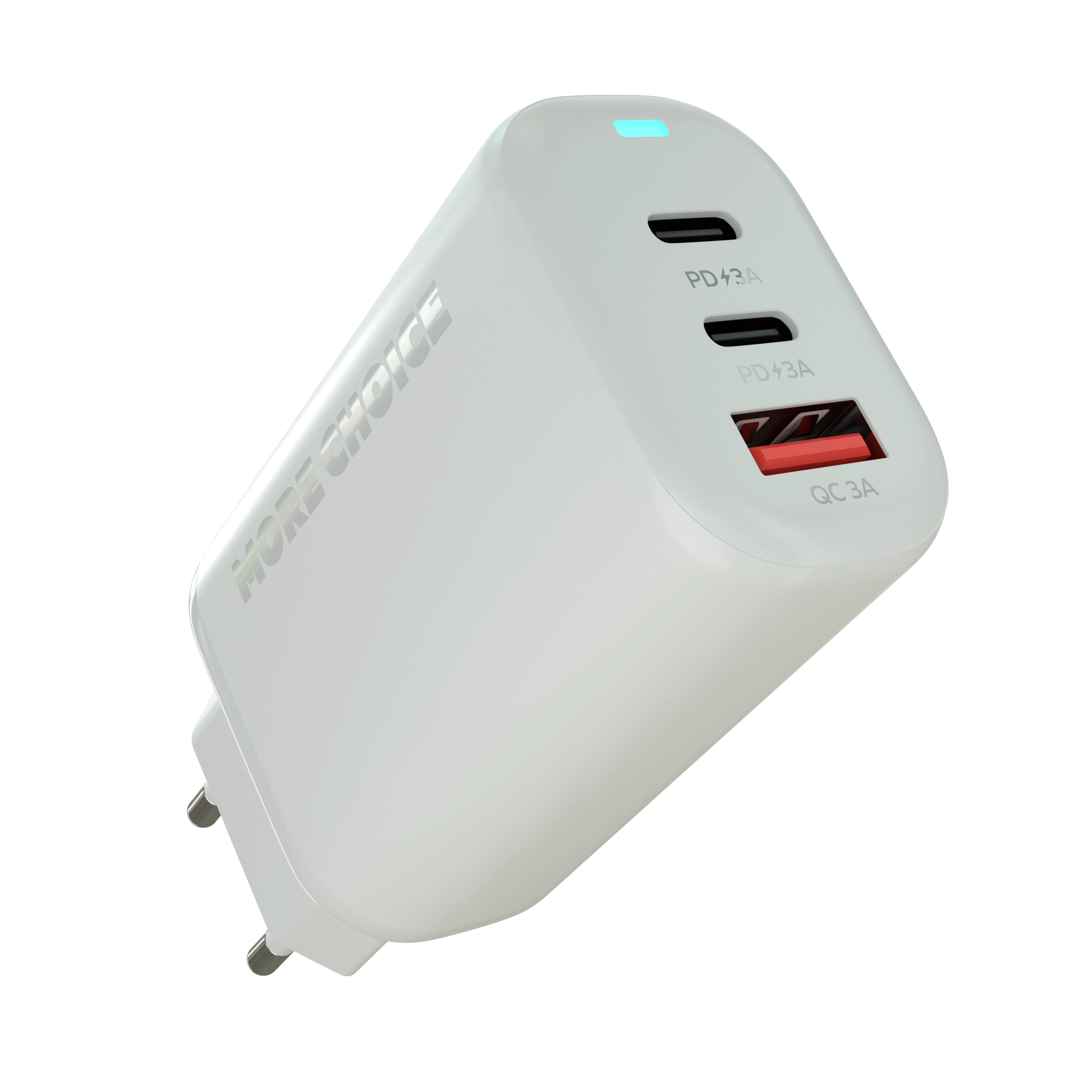 Сетевое зарядное устройство More Choice оснащено тремя разъемами (2Type-C и 1USB-A), что делает его универсальным и совместимым с большинством современных гаджетов.