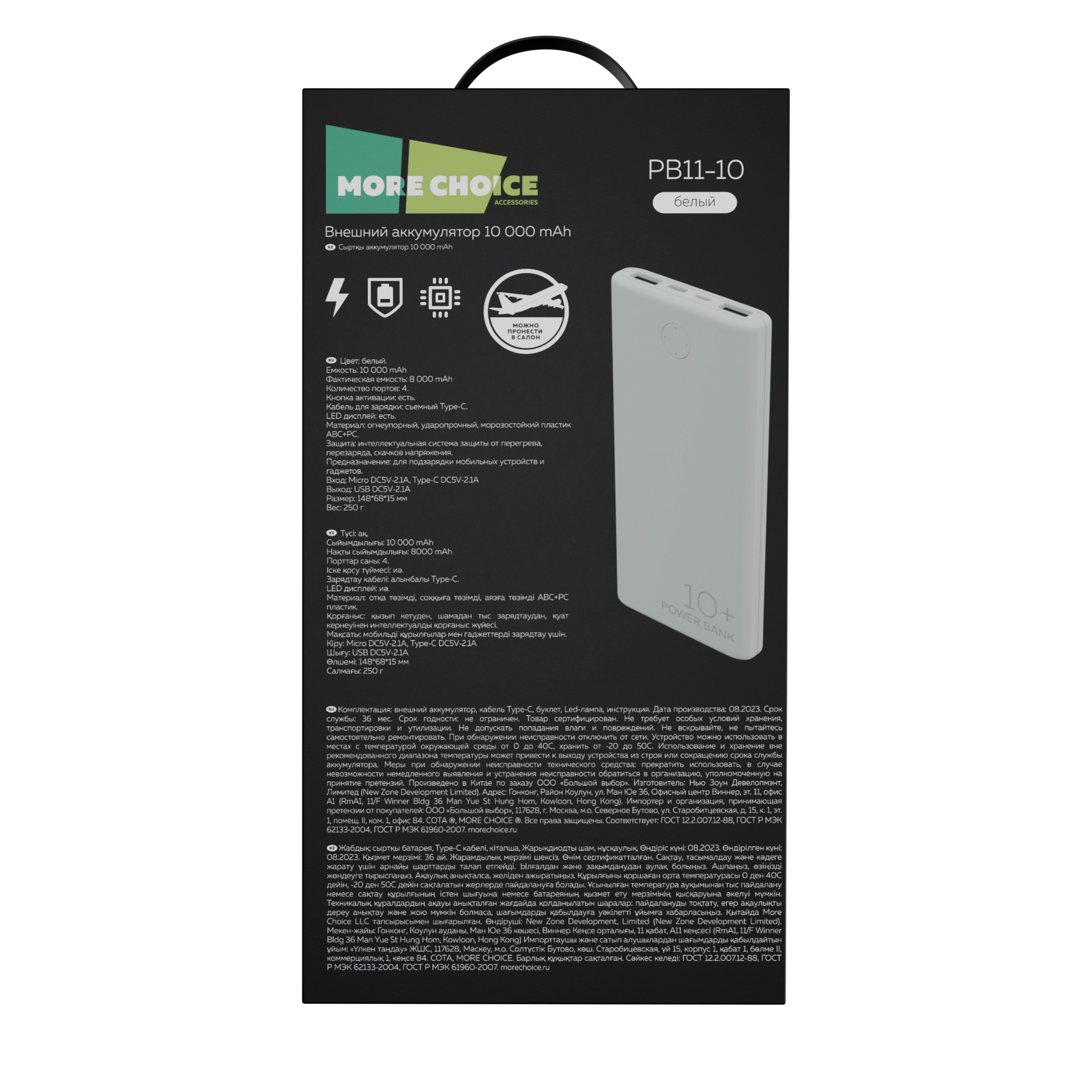 Внешний аккумулятор More Choice — надежное решение для зарядки гаджетов в любых условиях. Он идеально подходит для поездок, активного отдыха и повседневного использования, обеспечивая многократную зарядку смартфонов, планшетов и других устройств.