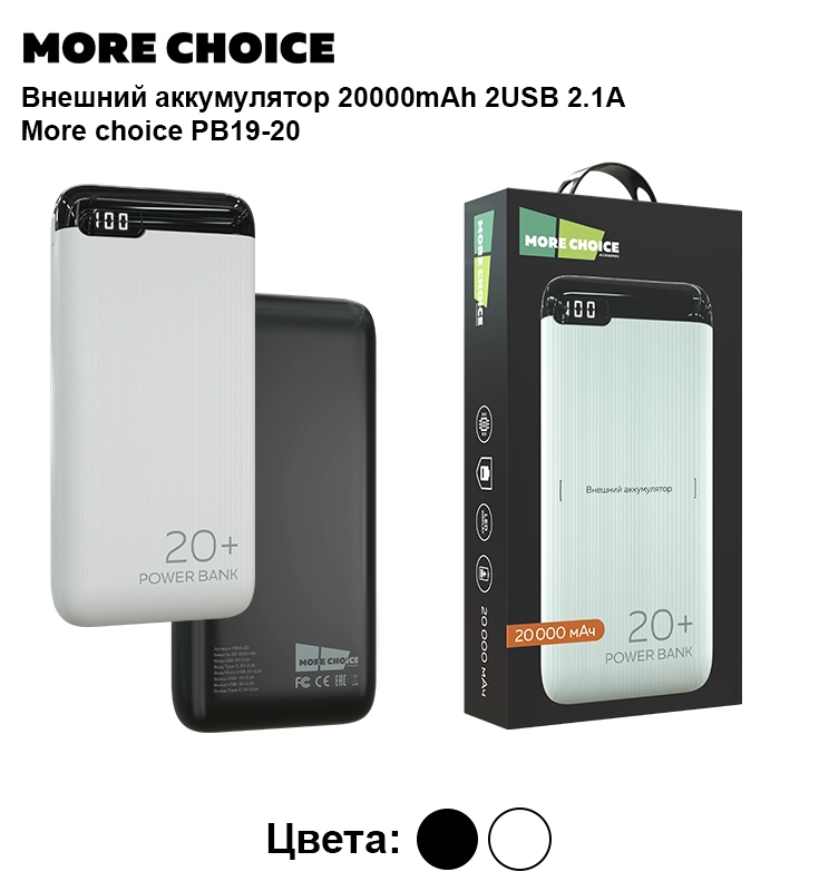 Внешний аккумулятор More Choice — надежное решение для зарядки гаджетов в любых условиях. Он идеально подходит для поездок, активного отдыха и повседневного использования, обеспечивая многократную зарядку смартфонов, планшетов и других устройств.