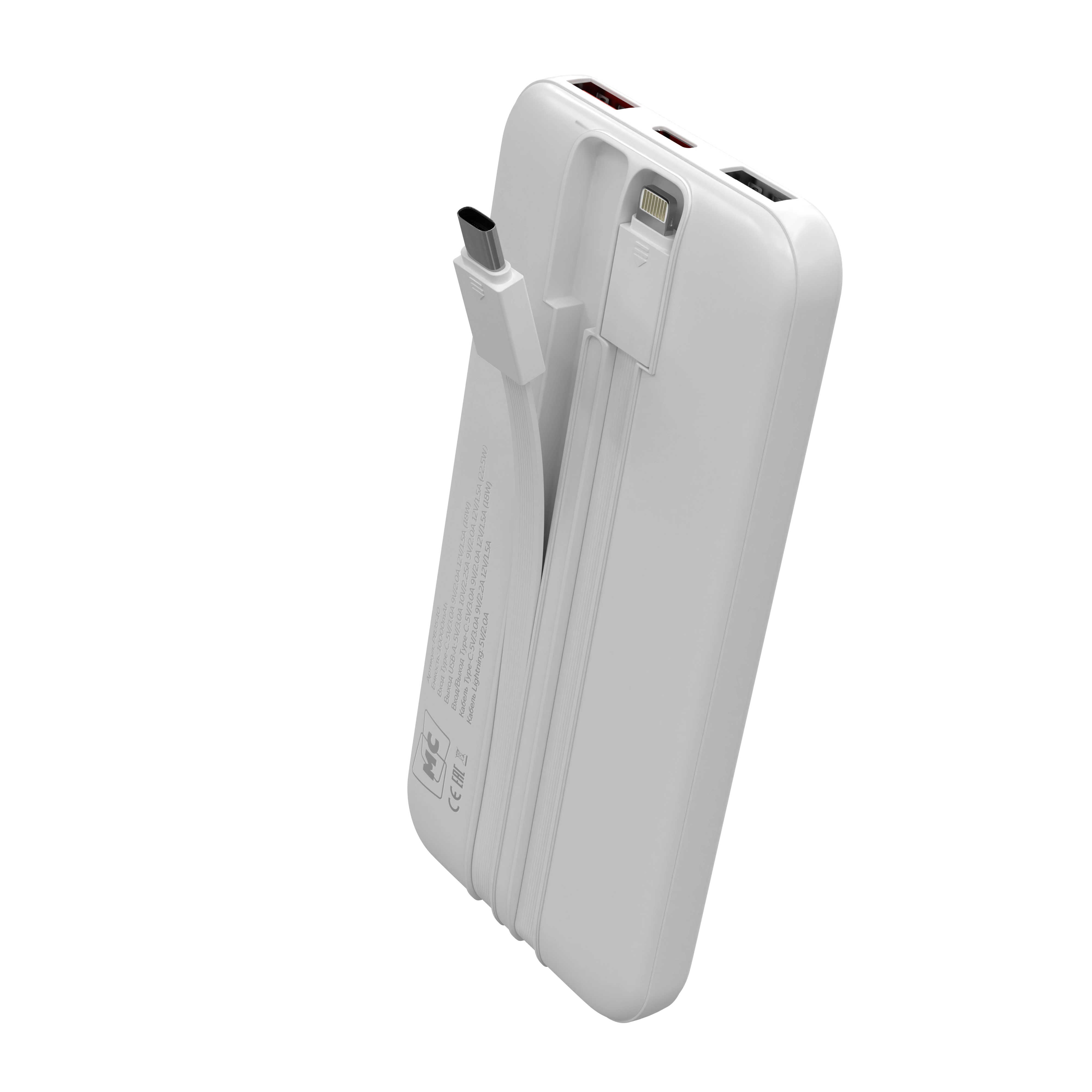 Встроенные кабели Lightning и USB Type-C избавляют от необходимости искать дополнительные провода, так как все необходимое всегда под рукой.