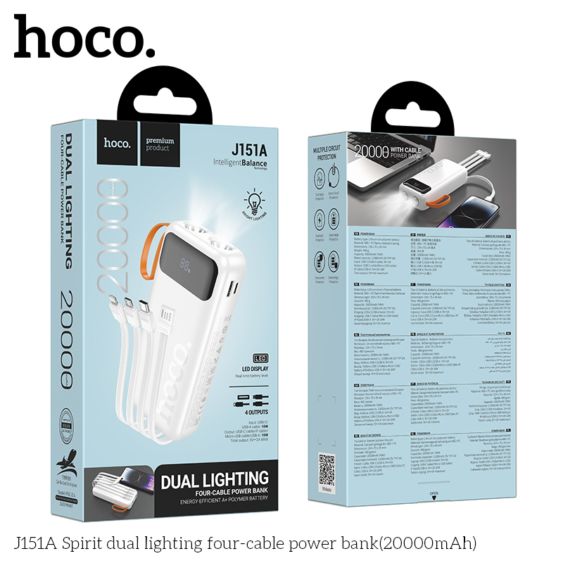 Внешний аккумулятор 20000mAh 1USB+1Type-C 2.0A Hoco J151A с кабелем