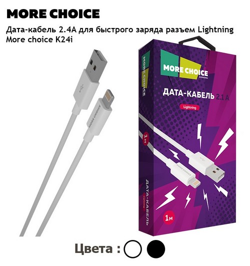 Кабель для зарядки More Choice — это универсальный провод питания, предназначенный для зарядки устройств с разъемом Lightning. Он обеспечивает надежное подключение и стабильную передачу энергии для ваших гаджетов, будь то смартфоны или другие устройства.
