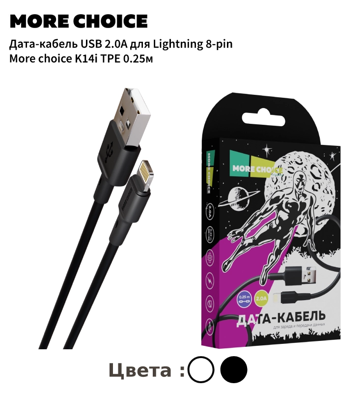 Этот USB провод подходит для всех современных гаджетов с разъемом Lightning и может использоваться в различных условиях: дома, в офисе или автомобиле. Кабель More Choice сочетает функциональность и качество, обеспечивая удобный и эффективный процесс зарядки. Прочный провод и универсальный дизайн делают его незаменимым аксессуаром в вашей повседневной жизни.