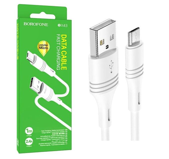 Дата-кабель USB 2.4A для micro USB Borofone BX43 ПВХ 1м