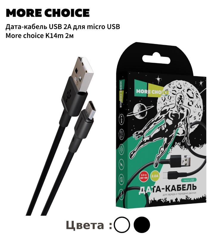 Кабель для зарядки More Choice с разъемом micro USB – это универсальный и высококачественный провод, обеспечивающий надежную зарядку различных устройств. Он поддерживает силу тока 2А, что гарантирует стабильное и эффективное подключение для ваших гаджетов.