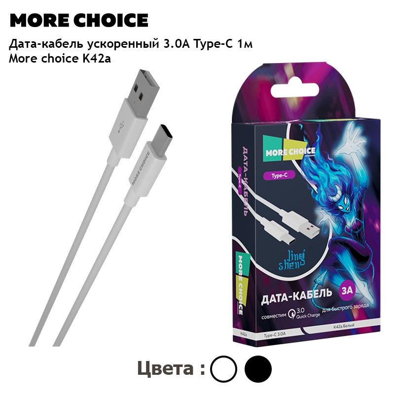 Прочность и долговечность кабеля гарантированы благодаря материалу оплетки TPE, который защищает зарядный провод от перегибов, износа и других повреждений, делая его надежным спутником для ежедневного использования. Кабель для зарядки More Choice сочетает в себе все необходимые характеристики для комфортной и безопасной работы ваших устройств.