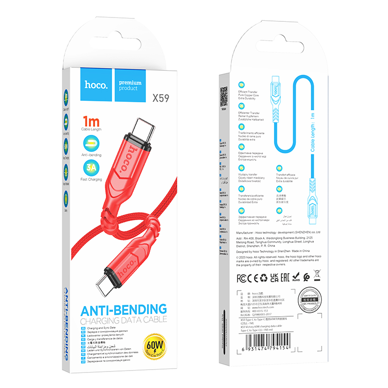Дата-кабель Hoco X59 — это высококачественное решение для быстрой зарядки и передачи данных между устройствами с разъемом Type-C.