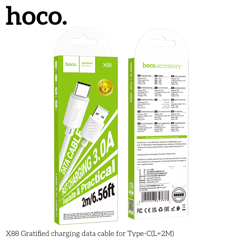 Дата-кабель USB 3.0A для Type-C Hoco X88 ПВХ 2м