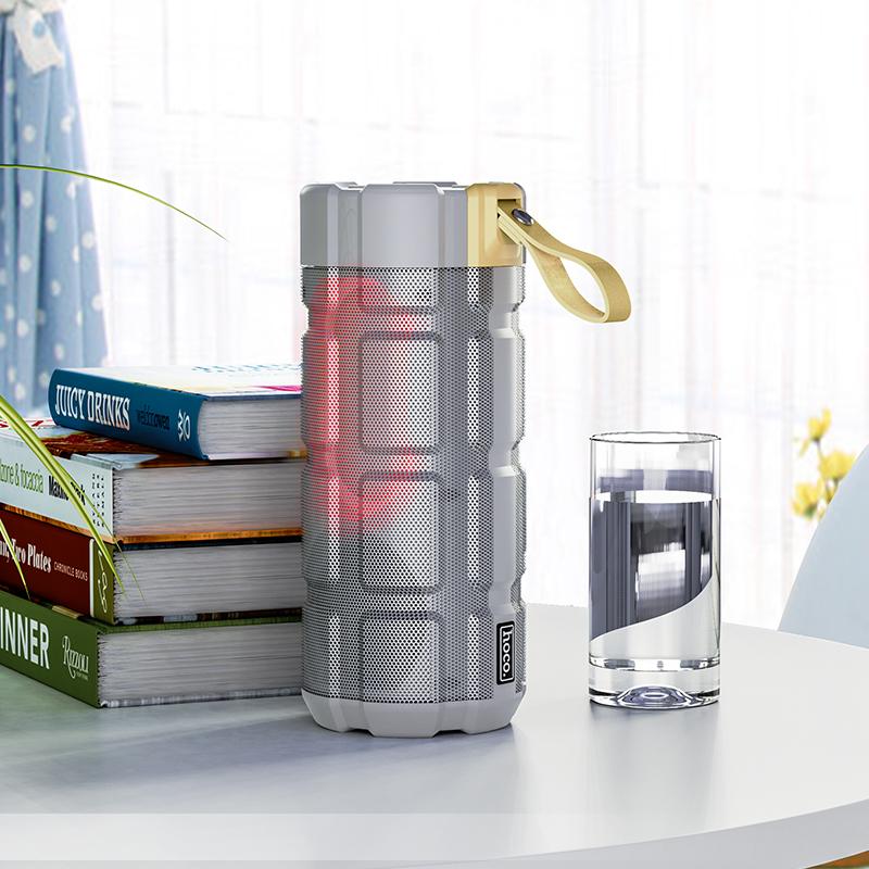 Беспроводная Bluetooth колонка HOCO HC7 поразит любого своим чистым и громким звуком.Представленная акустика может воспроизводит музыку через Bluetooth, AUX кабель и даже microSD карты.Колонка имеет форму цилиндра, и внешне напоминает небольшую бочку.По бокам находится тканевая сетка, она закрывает динамики.На дне специальное силиконовое кольцо, чтобы колонка не скользила на гладкой поверхности.Наверху расположен аккуратный и удобный пульт управления, сбоку веревочка для транспортировки аксессуара и небольшой индикатор работы. Данный товар за отличную цену.