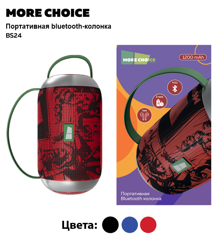 Компактная портативная беспроводная колонка More Choice BS24 поддерживает Bluetooth V5.1. Максимальная громкость: ≥95 дБ