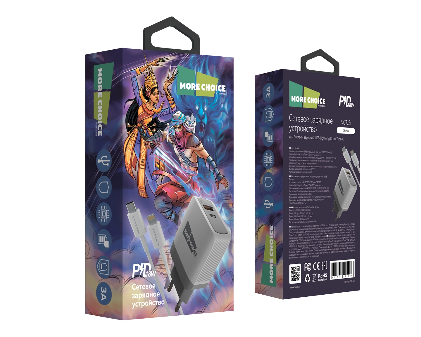 Сетевое зарядное устройство More Choice — современное и многофункциональное устройство для быстрой зарядки большинства гаджетов. Мощность до 20W и ток 3А обеспечивают ускоренную зарядку смартфонов, планшетов и других мобильных устройств.