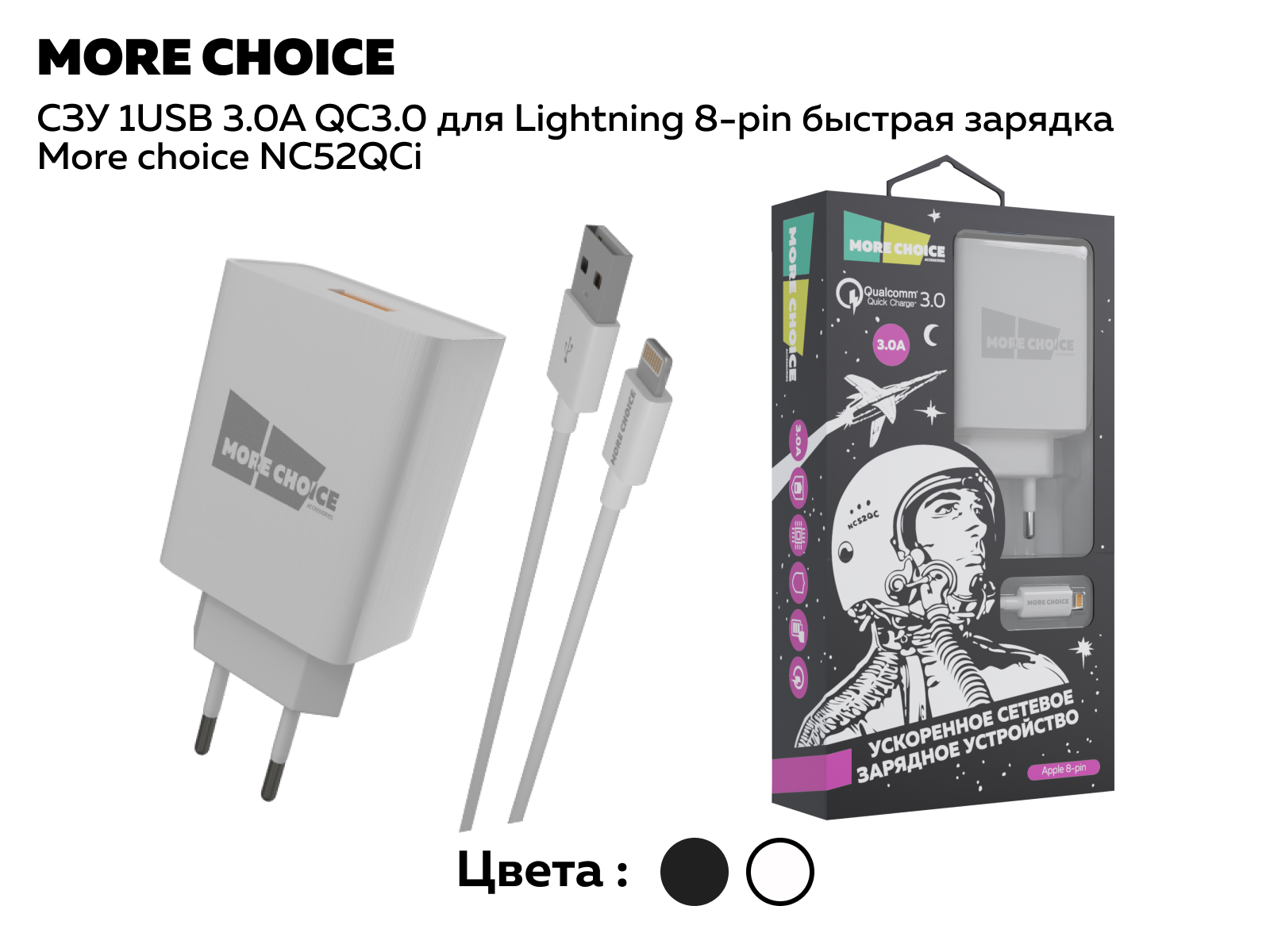 Сетевое зарядное устройство More Choice — ваш надежный помощник для быстрой работы современных гаджетов. Оно создано с учетом высоких требований к скорости, безопасности и удобству, делая процесс зарядки простым и комфортным. Благодаря поддержке протокола быстрой зарядки QC 3.0, устройство минимизирует время, необходимое для восстановления энергии. С током в 3А, оно справляется с задачами, требующими высокой мощности, что особенно важно для современных смартфонов и других энергоемких гаджетов. Особенность зарядника — 2 USB разъема, позволяющие заряжать два устройства одновременно, что экономит время. В комплекте идет качественный кабель с разъемом Lightning 8-pin, идеально подходящий для зарядки и синхронизации устройств iOS, обеспечивая надежное соединение и поддержку быстрой зарядки. Компактный и стильный дизайн делает СЗУ удобным в использовании дома, в офисе или в поездках. Внутри предусмотрены системы защиты от перегрева, короткого замыкания и перенапряжения, что гарантирует безопасность ваших устройств.