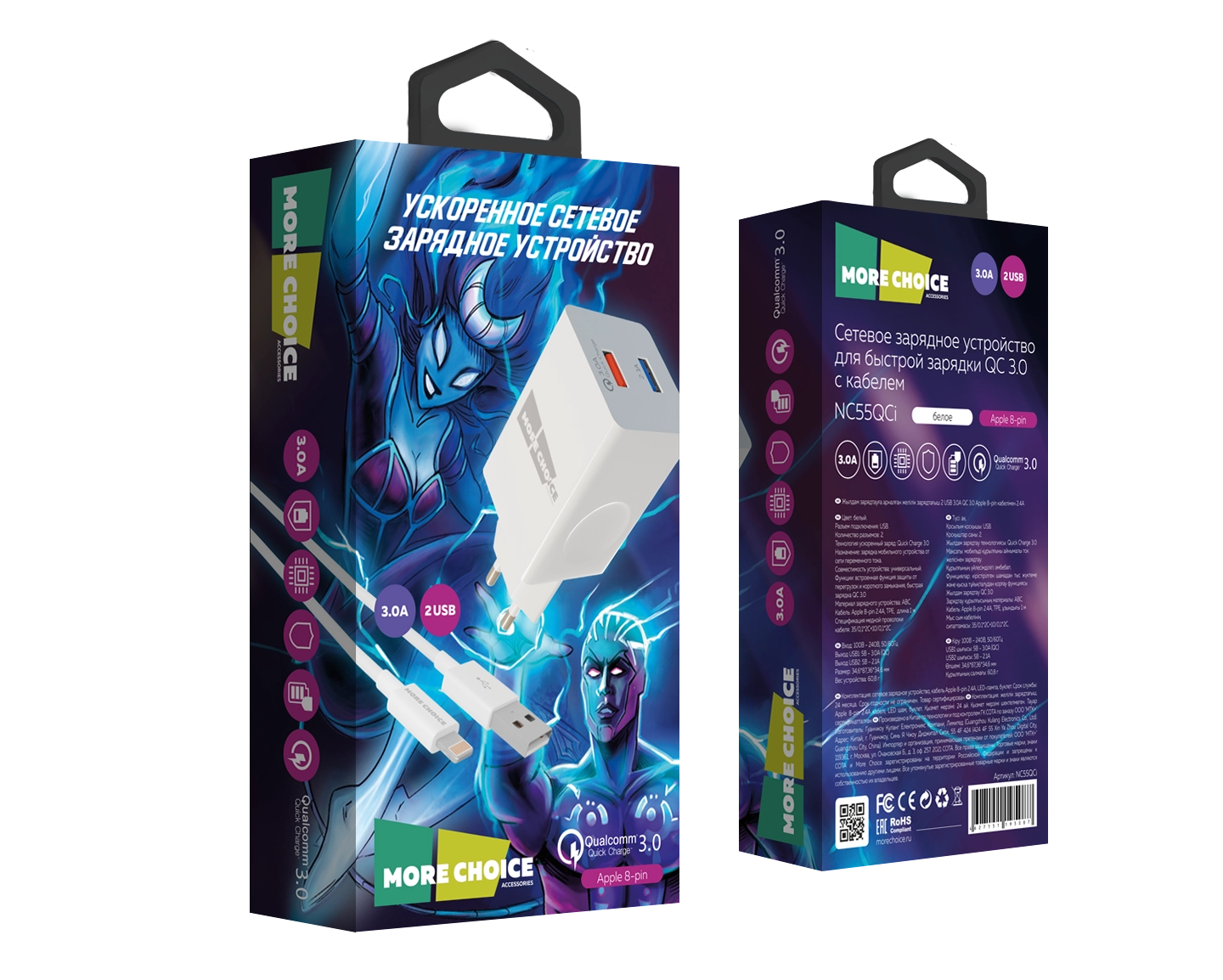 Сетевое зарядное устройство More Choice — современное решение для тех, кто ценит скорость, удобство и надежность. Оно разработано для эффективной и безопасной зарядки ваших гаджетов в любых ситуациях. Главной особенностью зарядника являются 2 USB разъема, позволяющие одновременно заряжать два устройства, что полезно в условиях ограниченного времени. Технология быстрой зарядки QC 3.0 обеспечивает оптимальную скорость, достигая тока до 3А, что позволяет зарядить смартфон или планшет в кратчайшие сроки без ущерба для аккумулятора. В комплект входит кабель Lightning 8-pin, идеально подходящий для устройств Apple, таких как iPhone, iPad или iPod, избавляя от необходимости дополнительно приобретать кабель. Аксессуар подходит для зарядки телефонов, планшетов, портативных аккумуляторов, умных часов и наушников. Компактный и прочный корпус делает СЗУ More Choice идеальным для использования дома, в офисе, на отдыхе или в поездке.