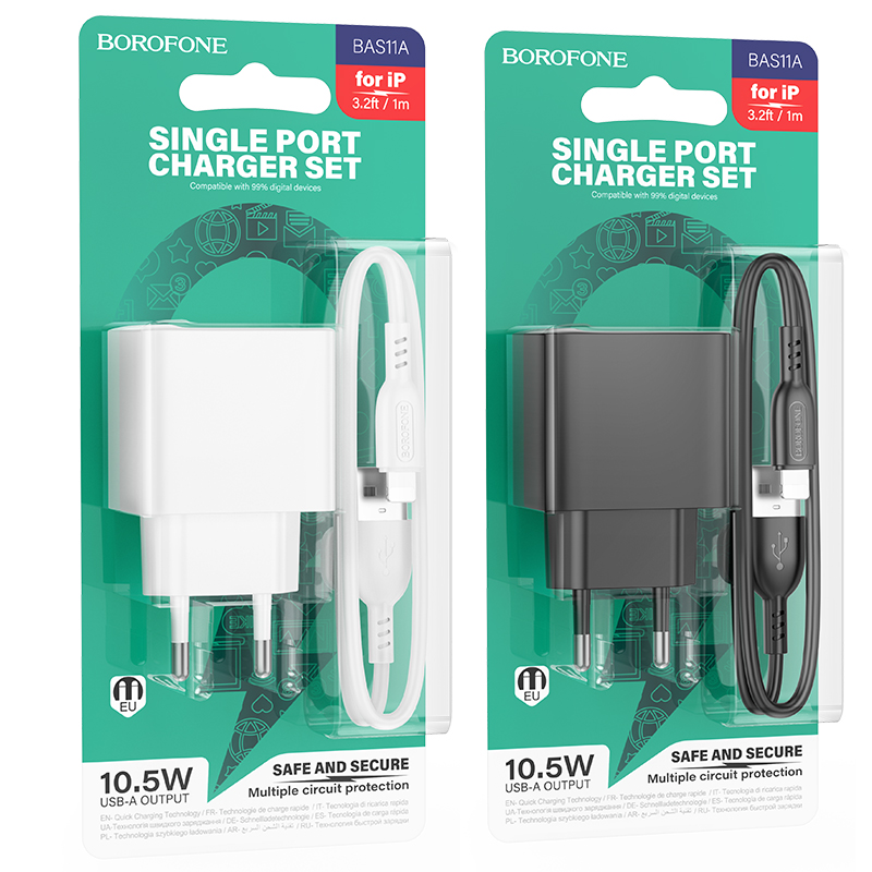 Сетевое зарядное устройство Borofone BAS11A имеет классический USB выход и питание 220В от обычной розетки. Адаптер совместим с USB кабелем для подзарядки телефонов, смартфонов, планшетов, беспроводных наушников и других устройств. Его удобно брать с собой на работу, поездку на дачу и в путешествия - благодаря компактным размерам он занимает минимум места в багаже. Адаптер имеет прочный пластиковый корпус и изготовлен из качественного огнестойкого материала, поэтому будет безопасным для вашего устройства и прослужит долго. Зарядное устройство поддерживает зарядку мощностью 10,5W и силу тока до 2.1A, что обеспечивает стабильную и эффективную зарядку вашего смартфона. Поставляется в комплекте с зарядным кабелем USB - Lightning 8-pin длиной 1 м. Выполнен в черном и белом цветах.
