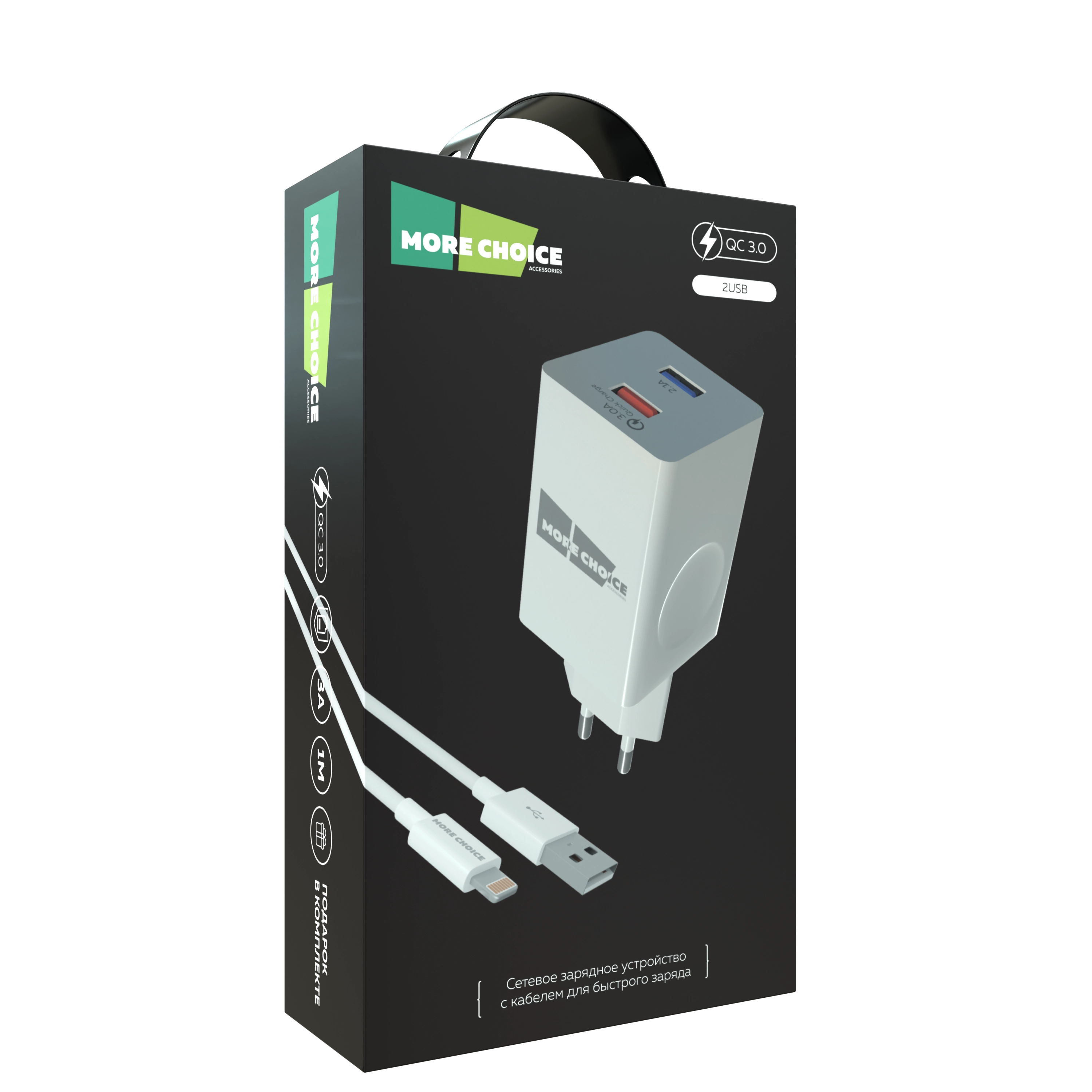 Сетевое зарядное устройство More Choice – идеальное решение для тех, кто ценит скорость, удобство и надежность. Это зарядное устройство для телефона оснащено всеми необходимыми функциями для простоты и эффективности зарядки. Поддержка протокола быстрой зарядки QC 3.0 позволяет восстанавливать заряд аккумулятора за считанные минуты. Два универсальных разъема USB дают возможность одновременно подключать два устройства, что делает это СЗУ идеальным для повседневного использования. Благодаря току 3А, зарядка остается быстрой и безопасной, защищая аккумулятор от перегрева и перепадов напряжения. Особенность этой модели – наличие в комплекте кабеля с разъемом Lightning 8-pin длиной 1 м, что обеспечивает удобство подключения и надежную передачу энергии. Компактный и стильный дизайн позволяет брать зарядник с собой куда угодно – дома, в офисе или в путешествии он всегда будет под рукой.