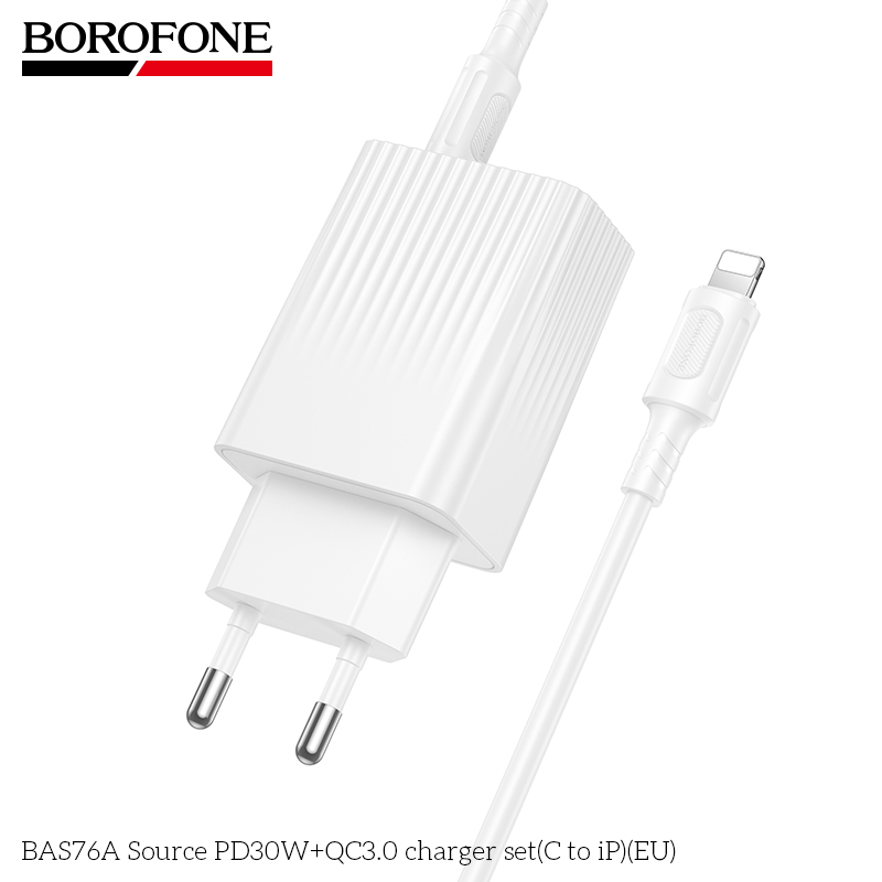 СЗУ 1USB+1Type-C 3.0A PD30W+QC3.0 быстрая зарядка для Lightning 8-pin Type-C Borofone BAS76A