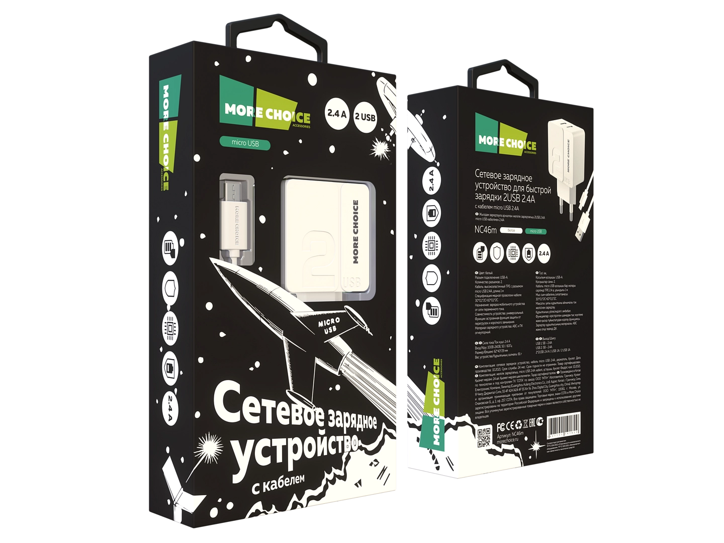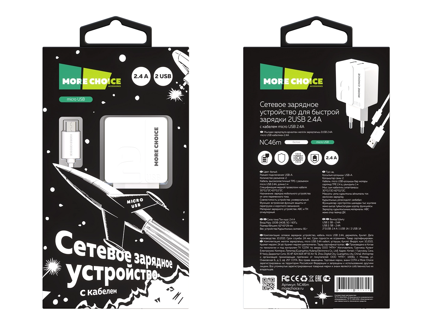 Универсальный адаптер More Choice NC46m — это идеальное решение для зарядки смартфонов и планшетов с разъемом microUSB. С двумя USB-разъемами вы можете одновременно заряжать два устройства, а кабель с microUSB обеспечивает быструю и эффективную зарядку.