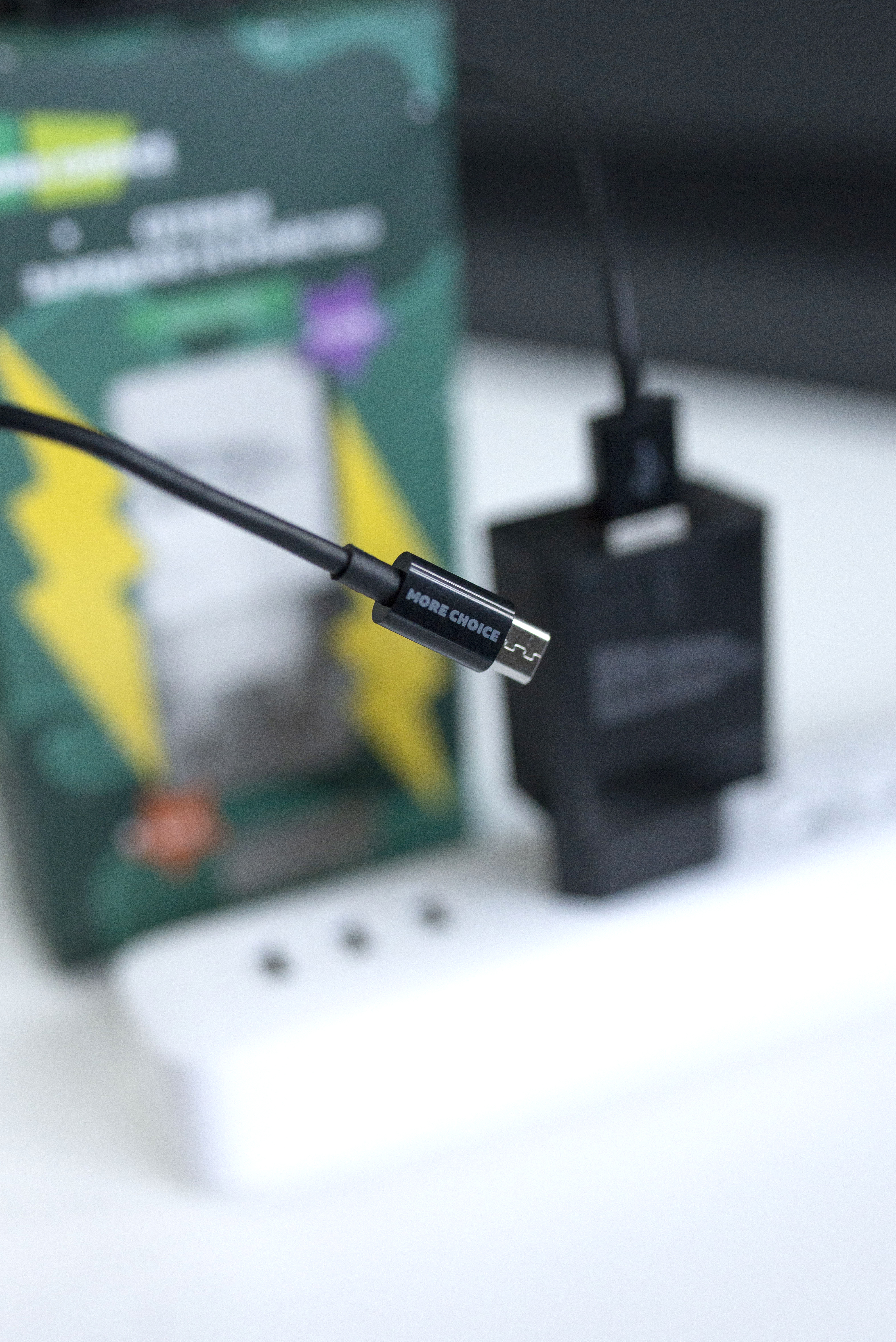 В комплекте идет кабель micro USB, совместимый с большинством современных устройств, обеспечивающий стабильное соединение для удобной и эффективной зарядки. Наличие двух USB-портов позволяет подключать разные типы кабелей, делая устройство универсальным решением для наушников, аккумуляторов и других гаджетов.